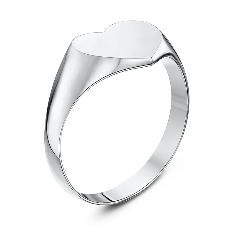 9ct White Gold Light Weight Heart Shape Ladies Signet Ring