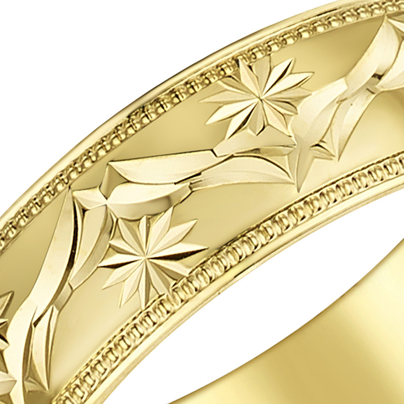 This Patterened Wedding Ring, has been fashioned from the finest of Gold - long-lasting and known to be used for wedding rings. These rings are solid Gold rings, with a UK assay office hallmark inside.