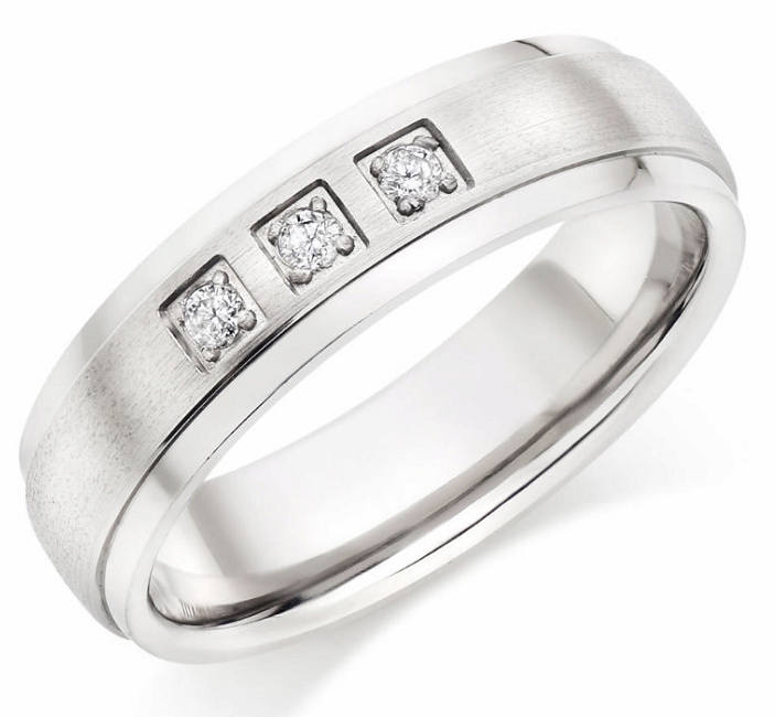 Titanium Flat Court Matt Center set with 0.09 carat Diamond 6mm Ring